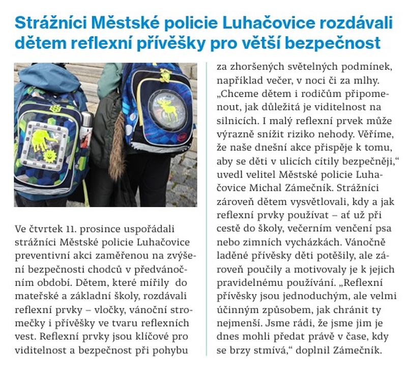 Strážníci Městské policie Luhačovice navštívili ve čtvrtek 9. října Základní školu při dětské léčebně Miramonti. Na preventivní přednášce si povídali s malými pacienty, kteří se účastní léčebného pobytu. Hlavními tématy...